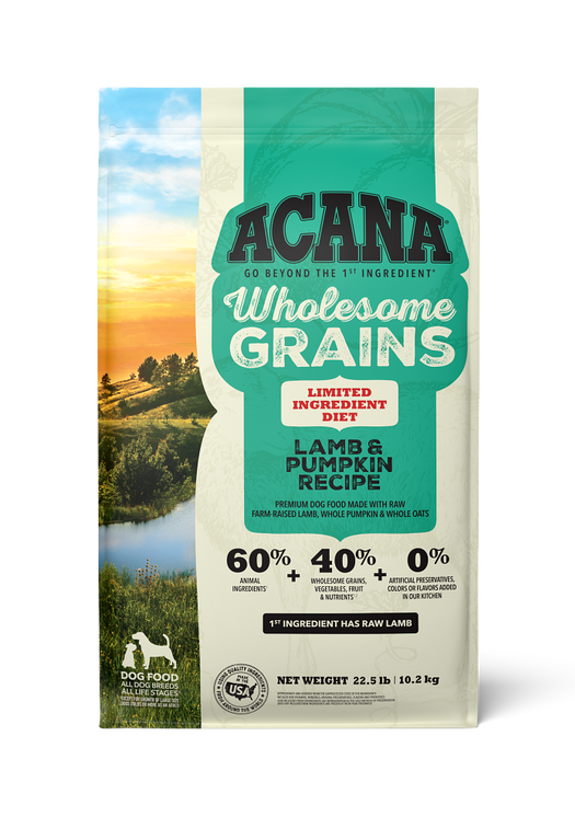 For dogs who thrive with grains in their diet, Acana™ Wholesome Grains recipes provide high-quality animal protein balanced with fiber-rich ancient grains like oats, sorghum, and millet. Each formula is crafted with fresh or raw meats as the first ingredient, plus antioxidant-rich fruits and vegetables to round out complete, balanced nutrition. With no gluten, potato, or unnecessary fillers, Acana Wholesome Grains is a nourishing choice you can feel good about feeding.
