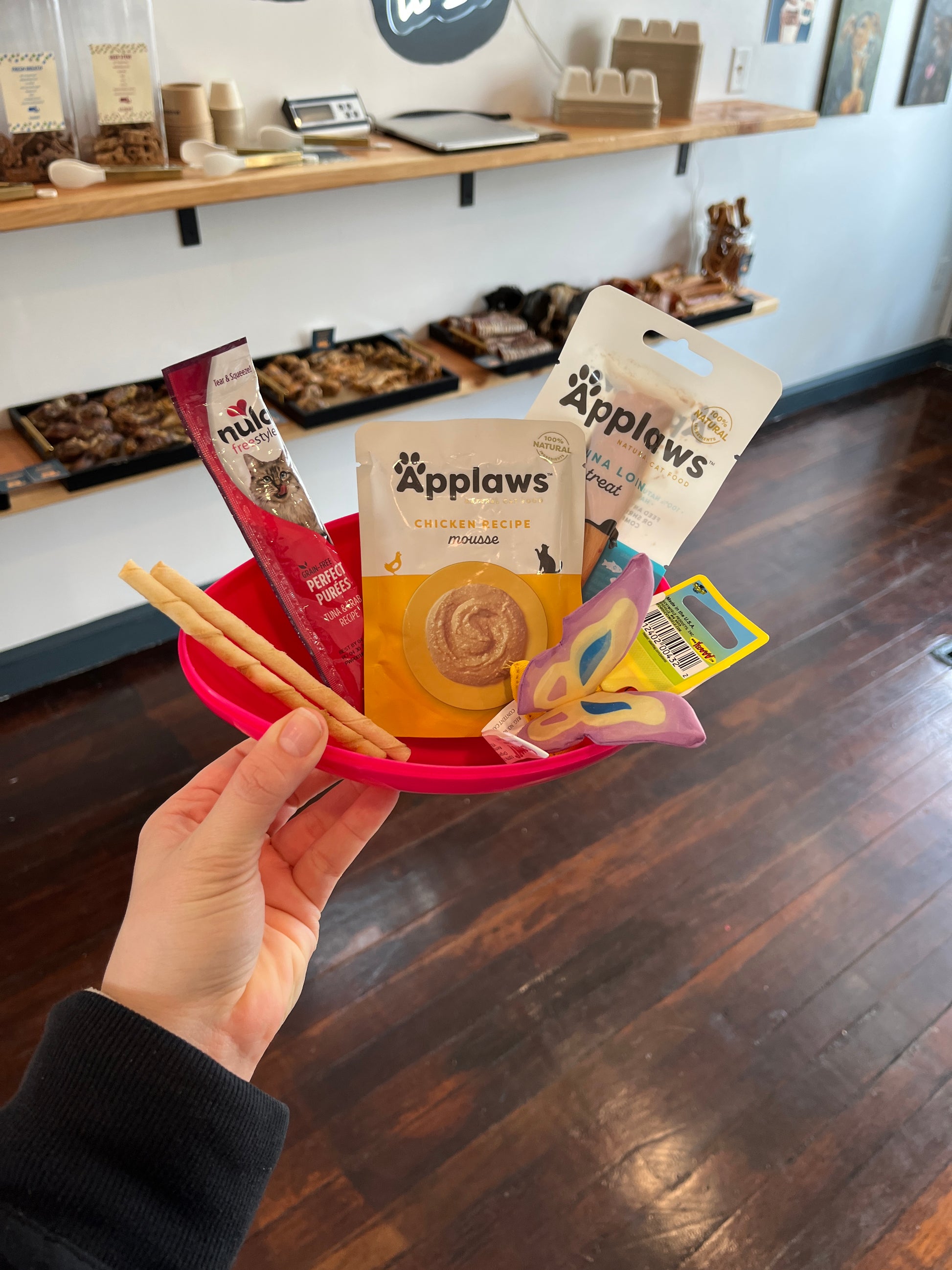 Don't leave your furry friend out of the Easter Bunny fun! Let us make you a Egg-cellent selection of goodies for your cat or dog. Choose between cat or dog and a few different monetary values to get what's right for you!