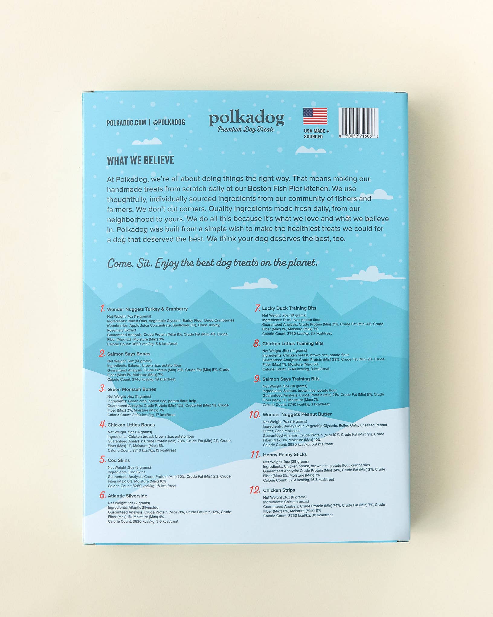 12 Days of Treating is back with a NEW design & sturdier exterior! Your new favorite holiday tradition is here! Make this holiday season one to remember with Polkadog's 12 Days of Treating Holiday Calendar! This extra special (& tasty) advent calendar is filled to the brim with all of our best-selling snacks, including Cod Skins, Chicken Strips, Wonder Nuggets, and more. Season's treatings!