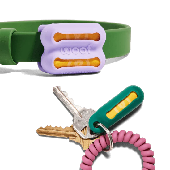 Poomergency is a full-sized, durable backup bag, tucked into an elegant holder - one that slides right onto your dog’s collar AND one that clips onto your keys.