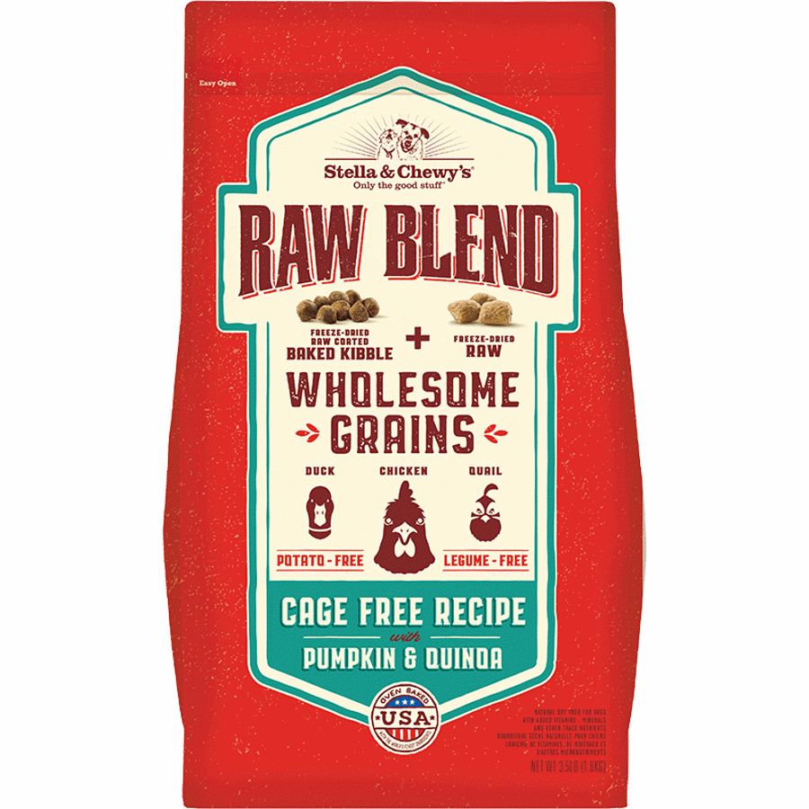 Stella & Chewy’s Wholesome Grains Raw Blend offers a balanced formula: whole grains, responsibly sourced animal protein, freeze-dried raw coatings and raw bits, plus fruits & vegetables. A clean, nutritious choice for grain-inclusive feeding without sacrificing raw benefits.